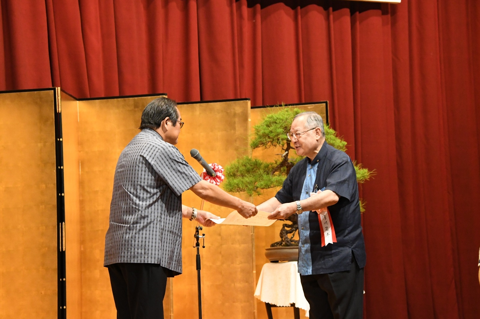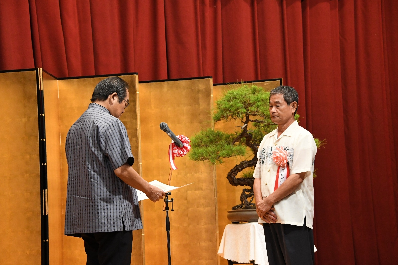 | 沖縄電波協力会長表彰を代理で受賞する仲宗根さま(新垣さま代理) |