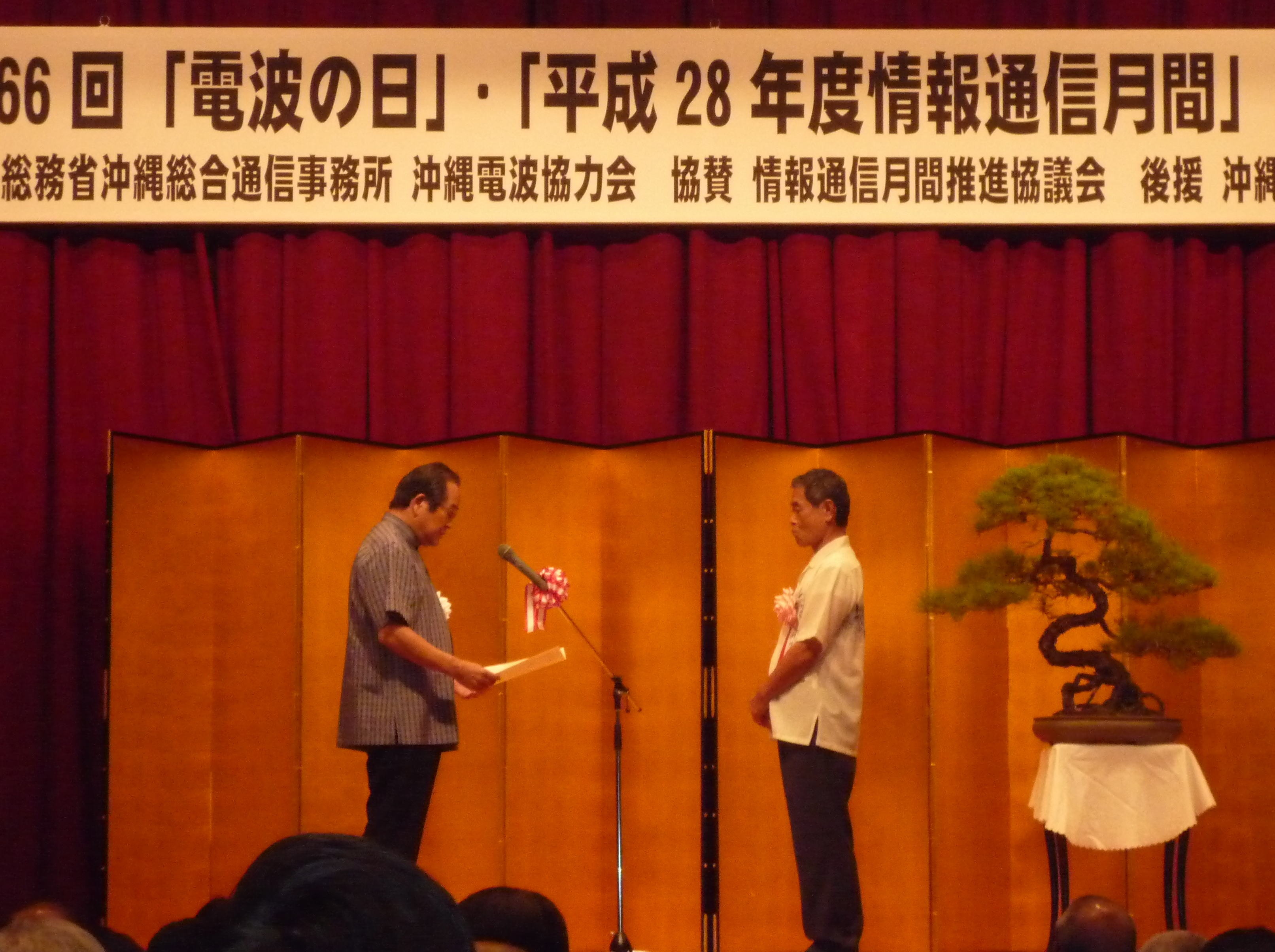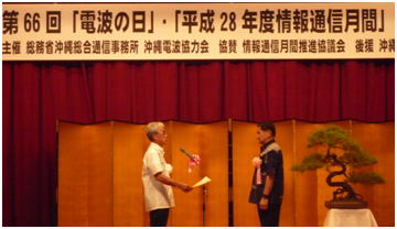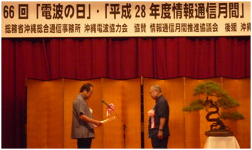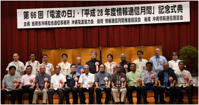 | 平成28年6月1日、沖縄バーバービュークラウンプラザホテルに於いて、平成28年度電波の日・情報通信月間記念式典が開催されました。 |